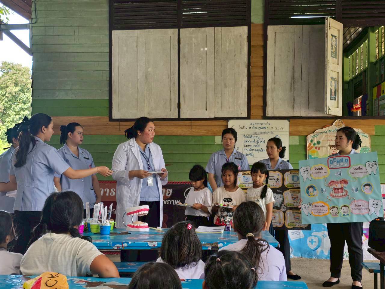วันที่ 7 ตุลาคม 2568 คณะพยาบาลศาสตร์ มหาวิทยาลัยราชภัฎอุตรดิตถ์ นักศึกษาพยาบาลศาสตร์ ชั้นปีที่3 ฝึกปฏิบัติภาคสนามวิชาการพยาบาลอนามัยชุมชน 1 ในงานอนามัยโรงเรียน ประเมินสุขภาพนักเรียนและบุคลากร ให้สุขศึกษา การควบคุมและป้องกันโรค การส่งเสริมสุขภาพ ประสานงาน การส่งเสริมสิ่งแวดล้อมที่ถูกสุขลักษณะในโรงเรียน และจัดทำโครงการให้ความรู้และทักษะ ในการส่งเสริมสุขภาพป้องกันโรค ด้าน ความสะอาดร่างกาย การล้างมือ การกำจัดเหา การแปรงฟัน และการคัดแยกขยะ ที่ โรงเรียน บ้านซ่านสามัคคี ตำบลหาดกรวด อำเภอเมือง จังหวัดอุตรดิตถ์